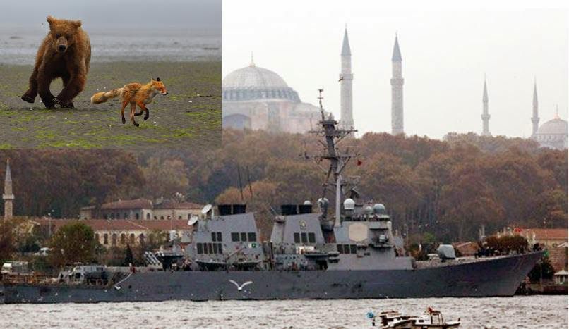 Δ. η δυναμική και κατακλυσμιαία παρέμβαση της Ρωσίας ακόμα και μέσω της γεωστρατηγικής πλατφόρμας της Κασπίας Θαλάσσης στα πράγματα της Συρίας, του Ιράκ και της Ανατολικής Τουρκίας , όπου κυοφορείται η χώρα της Κουρδίας, από μέρα σε μέρα επιταχύνει την γεωπολιτική κύρωση που σχεδιάστηκε εναντίον της Ρωσίας και είναι το κλείσιμο των ΣΤΕΝΩΝ του Βοσπόρου στις περίφημες Συμπληγάδες Πέτρες.