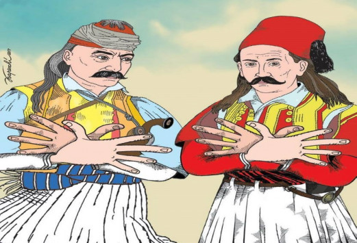 ΣΟΚ και αποτροπιασμό προκαλεί σκίτσο που έχει αναρτηθεί στα social media και δείχνει τους ήρωες της ελληνικής επανάστασης, Θεόδωρο Κολοκοτρώνη και Μάρκο Μπότσαρη να σχηματίζουν με τα χέρια τους τον αλβανικό αετό!