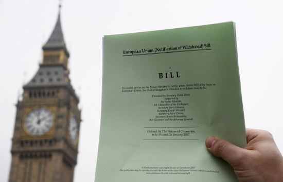 Η Βουλή των Κοινοτήτων υπερψήφισε σήμερα σε πρώτο στάδιο το «Σχέδιο Νόμου της Ευρωπαϊκής Ένωσης (γνωστοποίηση αποχώρησης)», το νομοσχέδιο που δίνει στην κυβέρνηση την εξουσιοδότηση να ξεκινήσει τις διαπραγματεύσεις της εξόδου του Ηνωμένου Βασιλείου από την Ευρωπαϊκή Ένωση.