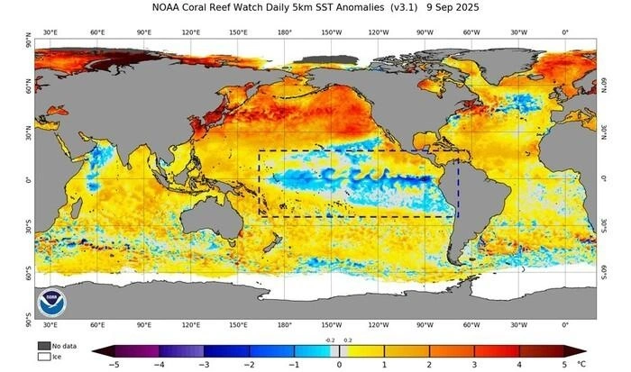Η Λα Νίνια έχει πλέον επισήμως ξεκινήσει και θα επικρατήσει το φθινόπωρο και τον χειμώνα που έρχονται. Οι χάρτες δείχνουν ξεκάθαρα την «ψυχρή ανωμαλία» στη μέση του Ειρηνικού, το χαρακτηριστικό αποτύπωμα του φαινομένου.