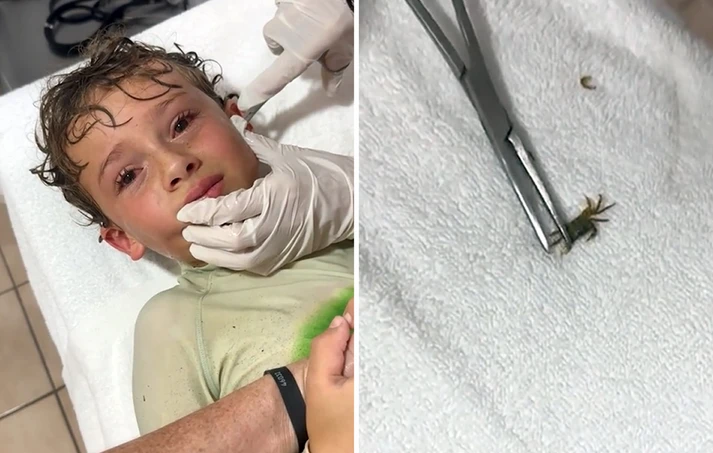 Μια σοκαριστική στιγμή καταγράφηκε όταν γιατρός αφαίρεσε ένα ζωντανό καβούρι από το αυτί ενός αγοριού, το οποίο ένιωσε κάτι να κινείται στο κεφάλι του, μετά από μια επίσκεψη σε παραλία στο Μεξικό.