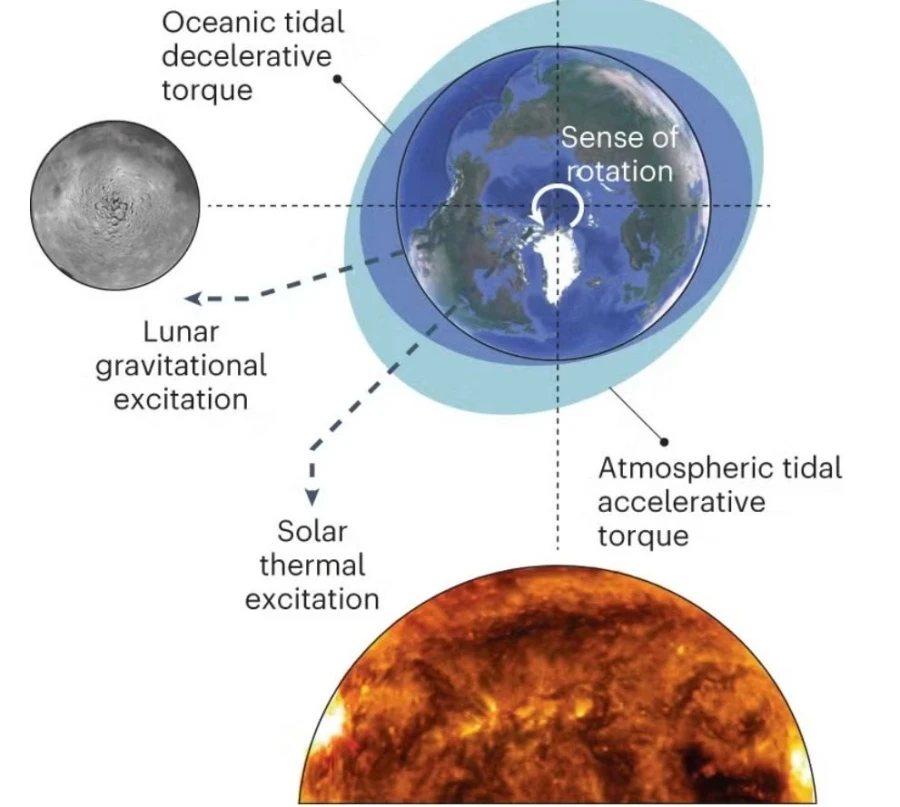 Η περιστροφή της Γης δεν υπήρξε ποτέ σταθερή. Από τα πρώτα στάδια της ιστορίας της, οι παλιρροϊκές δυνάμεις της Σελήνης λειτουργούν σαν ένα αργό αλλά διαρκές φρένο. Καθώς η Γη περιστρέφεται ταχύτερα από ό,τι περιφέρεται η Σελήνη, το παλιρροϊκό «φούσκωμα» των ωκεανών μετατοπίζεται ελαφρώς μπροστά από τη Σελήνη.