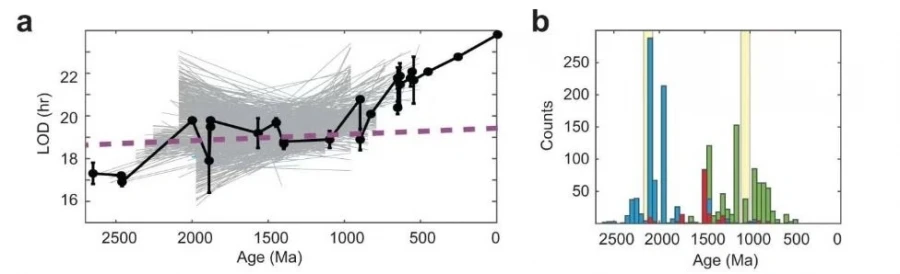 Το διευρυμένο σύνολο δεδομένων αποκάλυψε ένα εντυπωσιακό μοτίβο. Από περίπου δύο δισεκατομμύρια έως ένα δισεκατομμύριο χρόνια πριν, η διάρκεια της ημέρας φαίνεται να έχει «παγώσει» στις περίπου 19 ώρες. Η στατιστική ανάλυση δείχνει ξεκάθαρα ένα σημείο καμπής, όπου η σταδιακή επιμήκυνση της ημέρας διακόπτεται για σχεδόν ένα δισεκατομμύριο χρόνια.