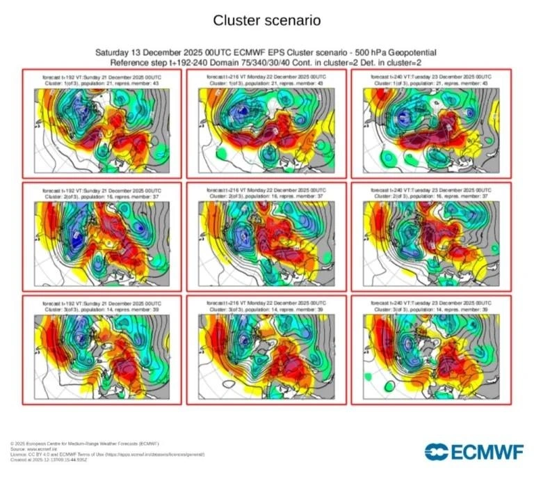 Τα προγνωστικά μοντέλα του καιρού ενισχύουν το σενάριο της επικράτησης ενός ισχυρού συστήματος υψηλών πιέσεων πάνω από την Σκανδιναβία, ανοίγοντας τον δρόμο στις ψυχρότερες αέριες μάζες από την Βορειοανατολική Ευρώπη ώστε να καταλήξουν μέχρι και την λεκάνη της Μεσογείου μετά τα Χριστούγεννα.