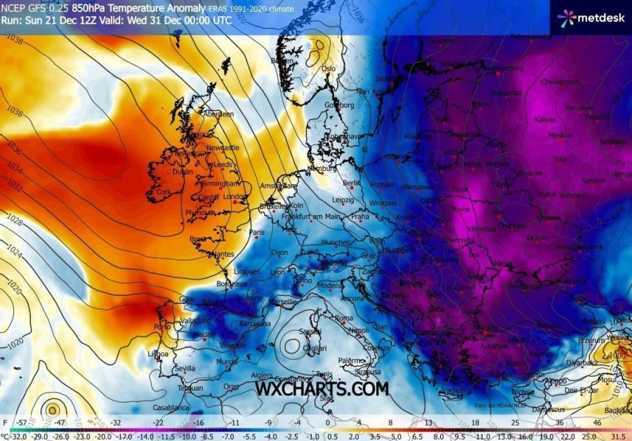 Προς το πολύ χειμωνιάτικο φαίνεται να στρέφεται ο καιρός στην αλλαγή του χρόνου όπου αν και το παγκόσμιο προγνωστικό μας σύστημα "ΗΡΑΚΛΗΣ" όπως φαίνεται και στον τελευταίο μας χάρτη "βλέπει" βαρυχειμωνιά με χιόνια ακόμη και σε πεδινές εκτάσεις, κρατάμε ακόμη αρκετές επιφυλάξεις μιας και δεν υπάρχει, ακόμη τουλάχιστον, συμφωνία και με άλλα προγνωστικά κέντρα.