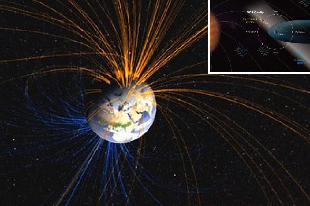 Σε μια μελέτη που δημοσιεύθηκε την Τετάρτη, 25 Μαρτίου στο περιοδικό Science Advances, οι ερευνητές περιγράφουν μια «κοιλότητα» στο διάστημα μεταξύ Γης και Σελήνης, όπου οι κοσμικές ακτίνες εκτρέπονται από το μαγνητικό πεδίο της Γης.